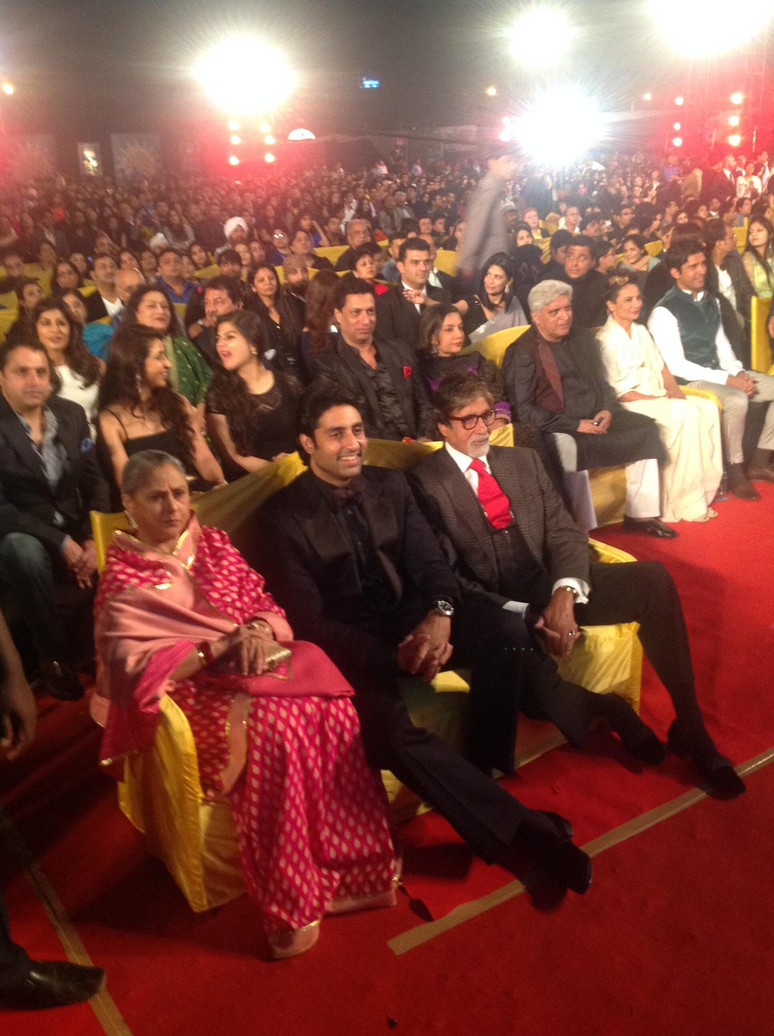 लाइफ ओके स्क्रीन अवार्ड्स में रौनक ही रौनक है. बिपाशा बासु मनीष मल्होत्रा की पोशाक और महीप कपूर के नेकलेस में गज़ब ढा रही थी. बॉलीवुड का बच्चन परिवार सबसे आगे की सीट पर बैठा. लेकिन, उनके साथ ऐश्वर्य राय बच्चन और अराध्य बच्चन नहीं थी. शत्रुघ्न सिन्हा ने अमिताभ बच्चन को प्राइड ऑफ़ द नेशन और प्राइड ऑफ़ द फिल्म इंडस्ट्री बताया। उन्होंने बिग बी को आम आदमी से बना ख़ास आदमी बताते हुए, उन्हें भारत का राष्ट्रपति बनाने की वकालत की. विधु विनोद चोपड़ा और शत्रुघ्न सिन्हा ने अमिताभ बच्चन को लाइफ टाइम अचीवमेंट अवार्ड दिया.शाहरुख़ खान चेन्नई एक्सप्रेस के लिए पॉपुलर एक्टर अवार्ड्स से नवाजे गए. उन्हें रेखा ने यह अवार्ड दिया. दीपिका पादुकोण को राम-लीला और चेन्नई एक्सप्रेस के लिए मोस्ट पॉपुलर एक्ट्रेस का अवार्ड दिया गया.